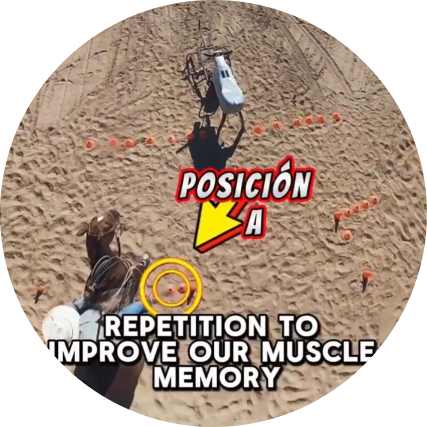 En este curso, trabajamos en la correcta posición en el cajón y en una buena salida, también practicamos desde dos distancias diferentes para dos escenarios diferentes . Un Lazo soltando una sola vuelta y otro Lazo soltando dos vueltas.